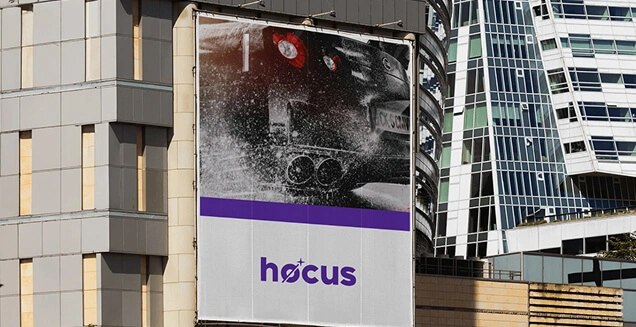Hocus logotipas – tai drąsus ir šiuolaikiškas tipografinis ženklas, atspindintis prekės ženklo siekį perteikti preciziškumą, rūpestingumą ir išskirtinumą. Logotipas turi dvi pagrindines spalvų versijas – violetinę ir oranžinę. Šios spalvos simbolizuoja dvi svarbias Hocus savybes: prabangą (violetinė) ir matomumą (oranžinė). Abi spalvos naudojamos strategiškai – siekiant atskirti skirtingus paslaugų lygius ir lokacijas.