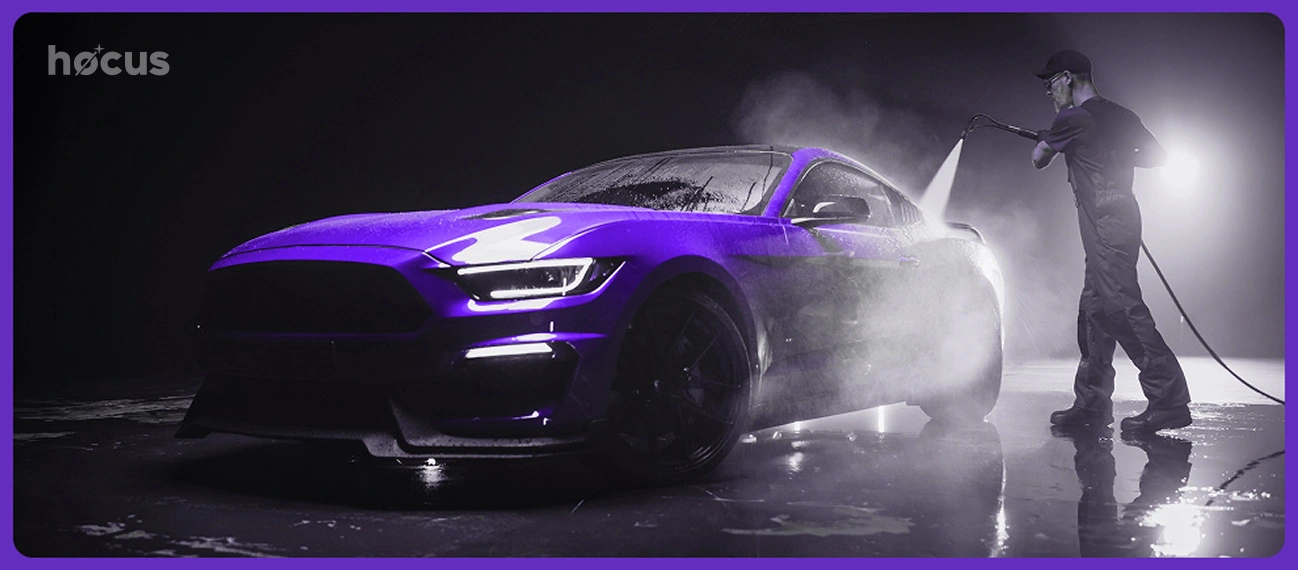 Rekomenduojama vaizduose akcentuoti rankų darbo, kruopščios priežiūros aspektą: stambūs planai, kai rankomis valomi paviršiai, vandens lašeliai ant nublizginto kėbulo, nepriekaištingai švarūs automobilio išorės vaizdai, subtilūs atspindžiai. Venkite mechanizmų ar automatizuotų vaizdų – tai neatitinka rankų darbo filosofijos, kuri yra „Hocus“ išskirtinumo pagrindas.